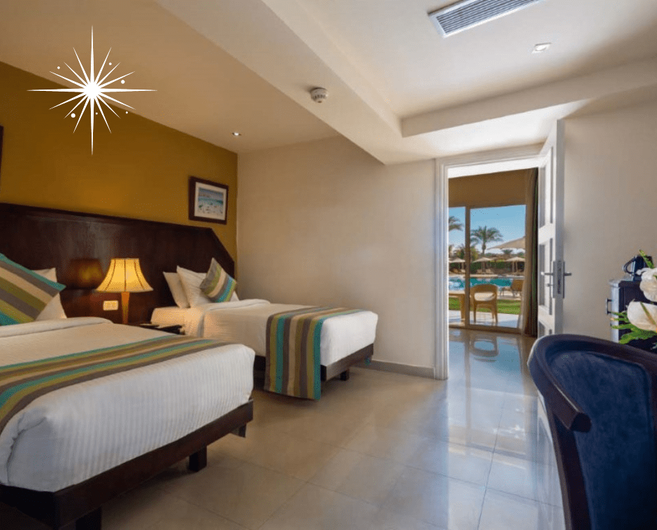 Experience a delightful family stay in an Xperience Kiroseiz Family Room, featuring two conveniently interconnected bedrooms. One room offers a king-sized bed for parents, while the adjoining room includes twin beds for the children.